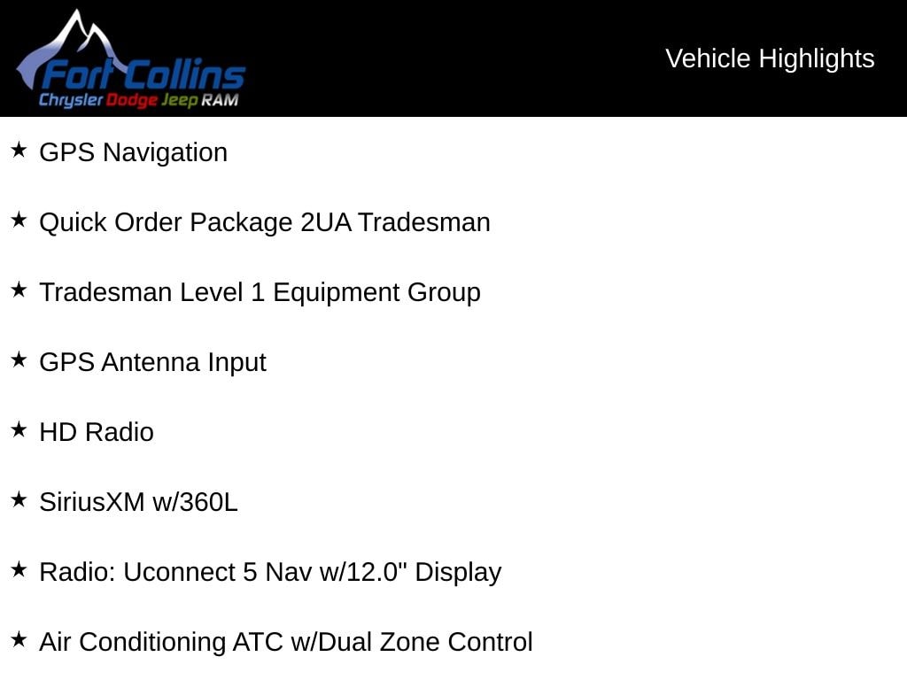 Our dealership is proud to serve not only Fort Collins but all of northern Colorado including Wyoming. With quality new and used cars and trucks. With the latest models of Jeep, Ram, Dodge, Chrysler. Come over and visit us at our Dodge Chrysler Ram location 3835 South College Avenue or our Jeep location 224 W Harmony Rd in Fort Collins and test drive a new Jeep, Ram, Dodge, or Chrysler or an used car or truck. We do our best to make sure our customers leave our dealership 100% satisfied with our excellent customer service and our friendly salespeople. We offer fantastic leases and financing options. Come test drive one of our new Hybrid vehicles or one of our heavy duty Rams! Call us to schedule today at 970.226.5340. Price includes: $1000 - 2026 National Bonus Cash . Exp. 11/03/2025
