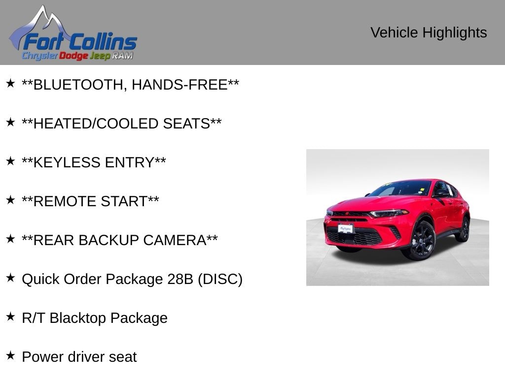 Discover the perfect balance of style, performance, and technology in the 2024 Dodge Hornet R/T. Visit our showroom today and experience the thrill of this exceptional crossover SUV for yourself. We're confident you'll be impressed by its exceptional value and the exceptional customer service you'll receive from our team. Take the first step towards an unforgettable driving experience â" schedule a test drive now.