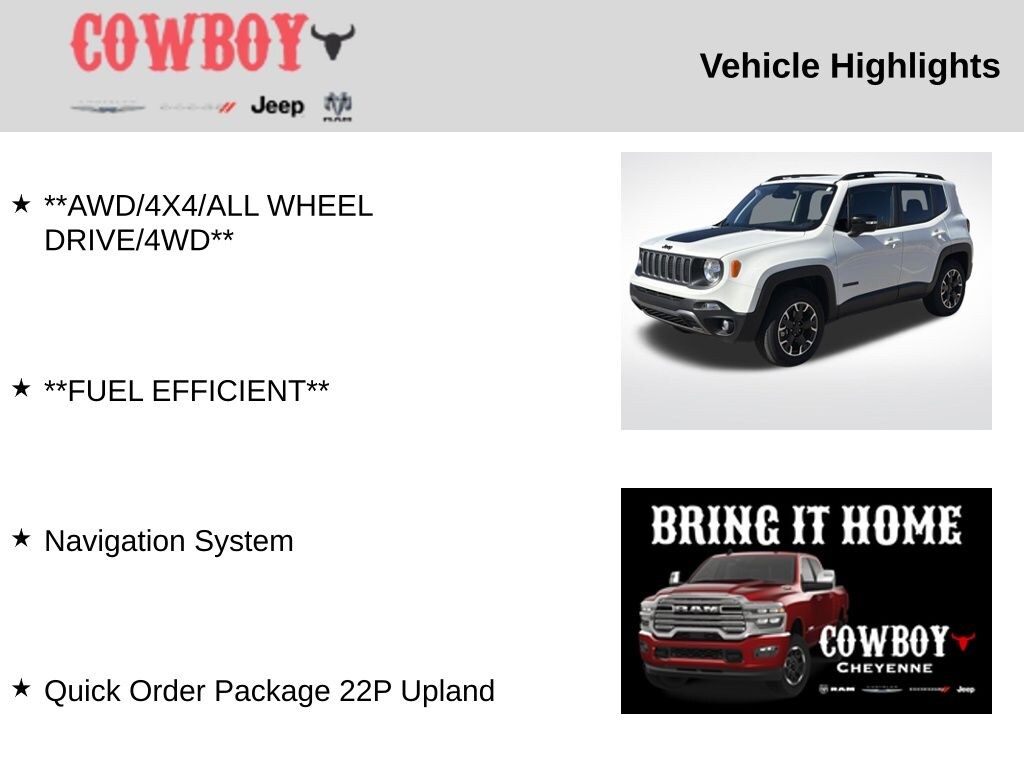 Beyond its impressive capabilities, the Renegade Latitude is designed with your comfort and convenience in mind. Enjoy the convenience of remote start, ambient LED interior lighting, and an 8.4-inch touchscreen infotainment system with integrated navigation. The leather-wrapped shift knob and premium cloth seating add a touch of refinement, while the 7-inch color driver information display keeps you informed on the go.