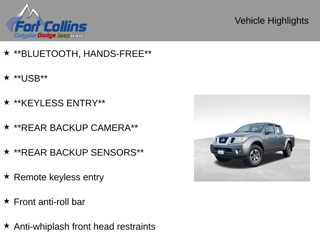 Whether you're hauling gear, towing a trailer, or simply enjoying the open road, the 2016 Nissan Frontier PRO-4X is the perfect blend of performance, capability, and comfort. With its impressive fuel efficiency, reaching up to 21 mpg on the highway, this truck is as practical as it is capable.