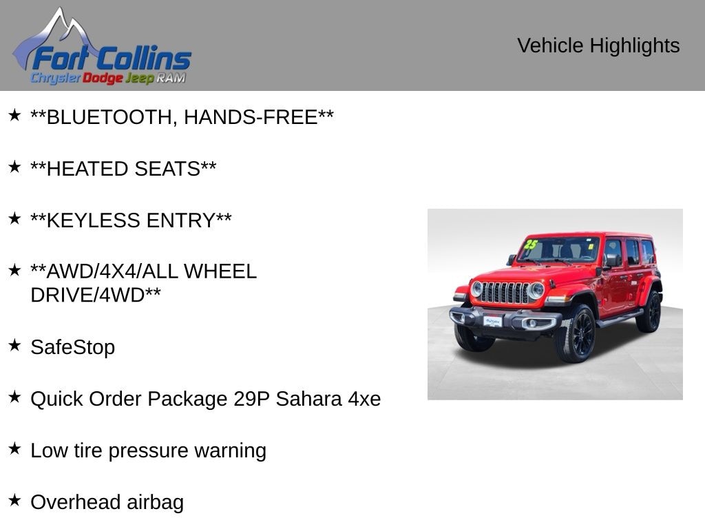 Discover the perfect blend of off-road prowess, eco-friendly performance, and modern amenities with the 2025 Jeep Wrangler Sahara 4xe. Experience the thrill of the open road and the freedom of the trail. Visit our showroom today and let us help you find your perfect match.