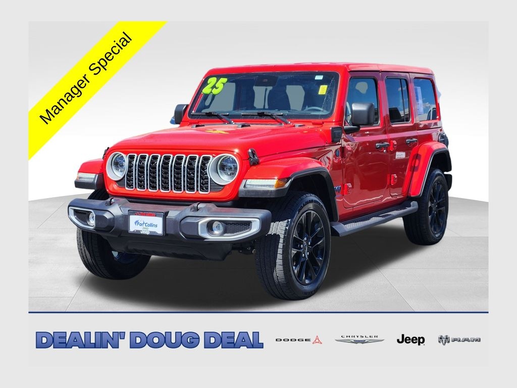 Discover the ultimate blend of off-road capability and eco-friendly performance with the 2025 Jeep Wrangler Sahara 4xe. This stunning SUV, finished in a bold Firecracker Red Clearcoat, is a true head-turner that's ready to take you on unforgettable adventures.
