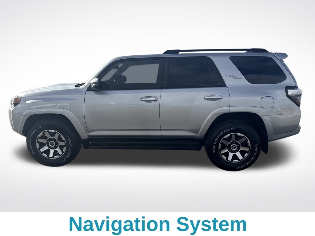 Certified. Silver 2021 Toyota 4Runner TRD Off-Road Premium 4WD 5-Speed Automatic with Overdrive 4.0L V6 SMPI DOHC 4Runner TRD Off-Road Premium, 4.0L V6 SMPI DOHC, 4WD, Black/Graphite w/Leather Seat Trim, Black Roof Rails, Navigation System, Off Road Package, Steering wheel mounted audio controls.